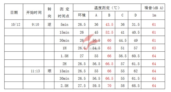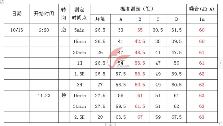測試過程:減速機類型:斜齒(加脂量:25g)