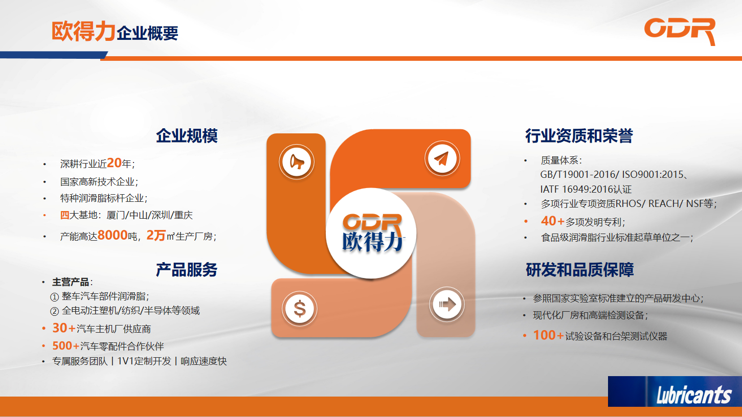 午夜AV影院歐德力(中山市)潤滑科技有限公司坐落於中山市民眾鎮,處於粵港澳大灣區核心地帶。由歐德力(廈門)潤滑材料科技有限公司與中山市午夜AV影院新材料科技有限公司聯合投資創建,在汽車特種午夜AV免费观看、全電注塑機午夜AV免费观看、紡織機械午夜AV免费观看等領域深入耕耘,成績斐然。